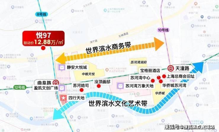 回过来看悦97,它是真正的苏河湾核心位置,真正揽尽了苏河湾的精华!