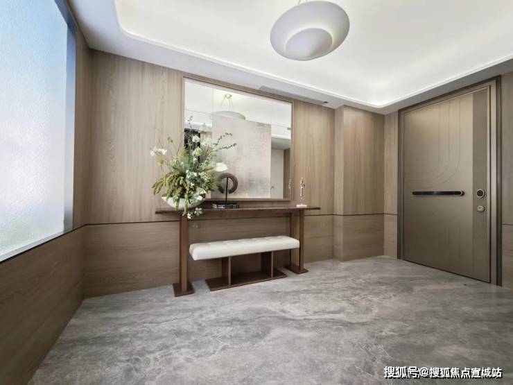 比如入户处,类一梯一户设计,开阔的电梯厅,如果未来可以独立使用,可作为自家前厅使用,形成内外“双玄关”,想象一下,这样的全明电梯厅,就算是在这里吃火锅、打麻将,也足够了!
