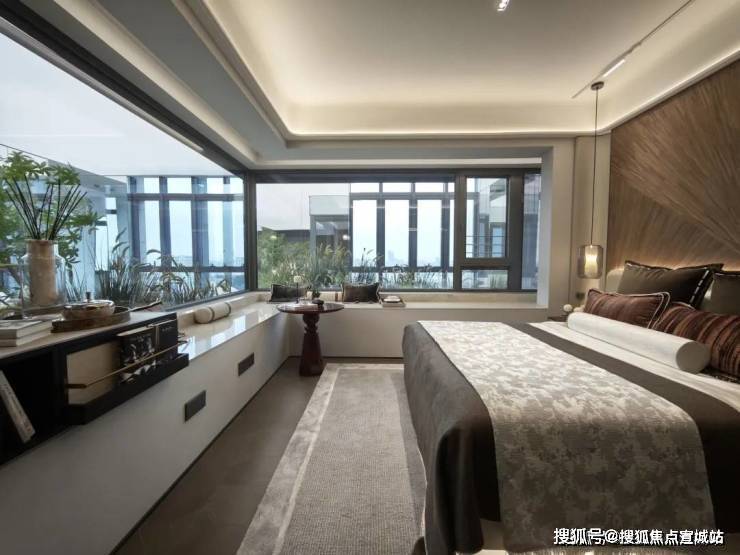 主卧也加入了270°景观飘窗设计,扩大了室内景观视野,而这个转角飘窗,独家君现场实测,面积在5㎡以上,可以说,实际使用率大幅提升!