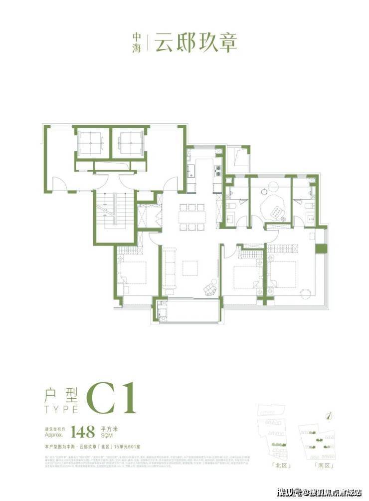 而148㎡户型:26套,是当下市场真四房!配备全明电梯厅+270度转角飘窗+内外双玄关,当之无愧的无敌地毯率王炸户型!