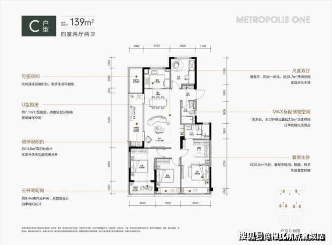 杭州珑望奥城售楼处电话☎:400-885-1337(预约看房热线)约172平方米的户型体现了生活的极致表达,其配备宽敞的大厅和跑道式阳台,四开间朝南和双套房的豪华设置使其在同类户型中突出。特别是厨房靠近客厅一侧的餐厅布局,使厨房成为家庭生活和社交的中心。