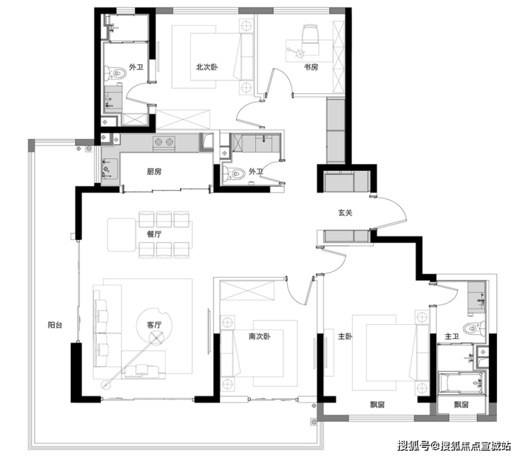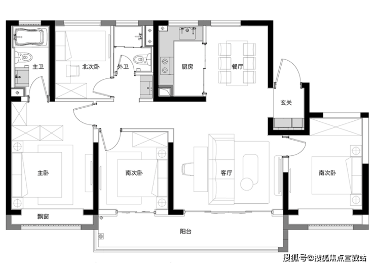 三房两卫设计,主卫设有浴缸,放松一天的疲劳。