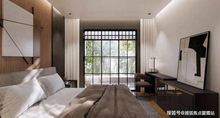 私密场域依旧保持静谧,黑白色基础上搭配了更多的色彩,例如深棕、浅紫等,艺术品的衬托深邃迷人,热络了家的氛围。