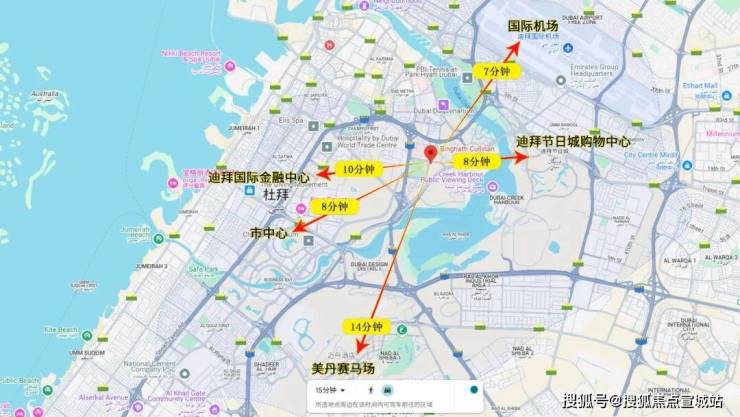 7分钟车程可达商务港、迪拜国际金融中心(DIFC),10分钟可达迪拜节日城购物中心、美丹赛马场,商务办公与休闲娱乐一站式覆盖;