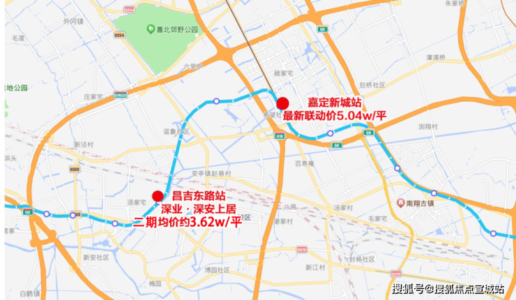 随着去年房地联动价的调整,涨价趋势明显。往前两站的嘉定新城站,在去年土拍中,嘉定新城G09-2地块的联动价攀上5.04万/m²。也就是说,未来想在嘉定买百平米新房,上车门槛直接提升了一个档次。