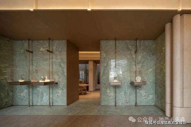 近1000方的月光米黄石材,爱马仕全球旗舰店同款的双曲面叠墙造景,搭配灯光大师“关永权”的戏剧化灯影设计,优雅迷人的气息扑面而来。