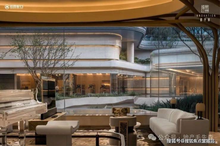 两棵高约14米的“生机之树”撑起三层观景回廊。透过大面落地的苹果店同款超白玻,层层叠石和潺潺流水尽收眼底,仿佛让人置身于九溪烟树的溪水幽谷当中。