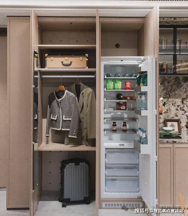 收纳升级:长约3.4米的整墙收纳柜+玄关收纳柜、家政柜配置单独洗涤盆等升级收纳配置!