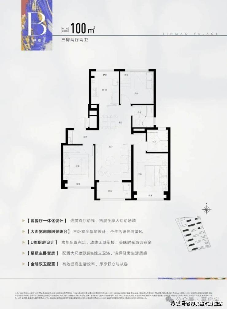 建面约100㎡3房2厅2卫,这是一个功能性和尺度感完美结合的明星户型。