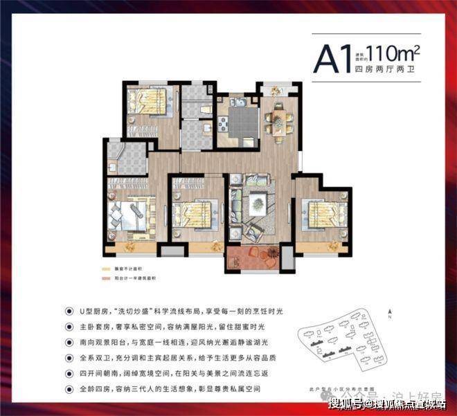 这套建面略大的四房产品,更为适合于三代同堂的家庭居住。