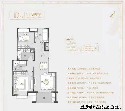 洋房:55㎡和56㎡1房1厅1卫、78㎡2房1厅1卫、89㎡3房2厅1卫