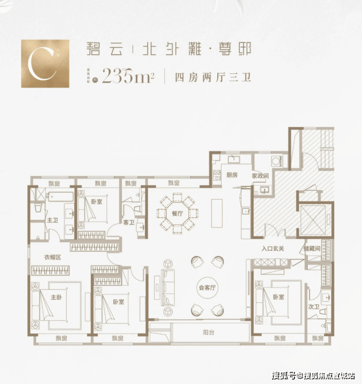 那么实际居住体验如何,我们可以参考已开放的建面约235㎡样板间: