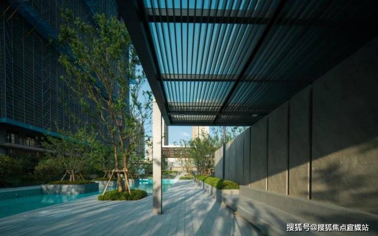 景观设计:融汇苏式经典元素,有水映幕墙、连廊水榭、坡檐韵致等景观节点,还有约 400㎡的户外戏水池。