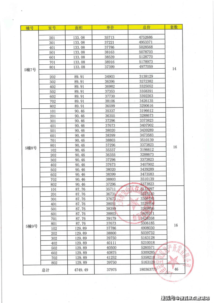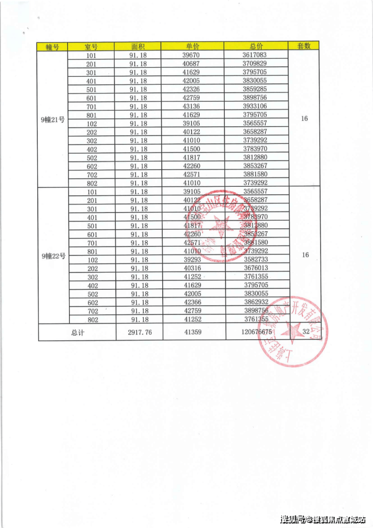 项目一房一价表