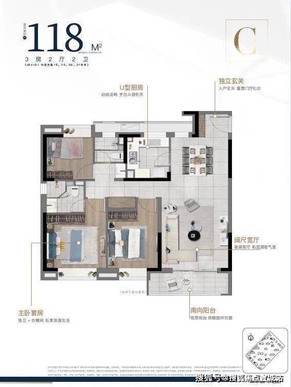 从位置图可以看到,新推独角兽住宅位于103板块顶科中芯,海港大道门户之上,是103核芯之中的核芯。与莫比乌斯科学公园、T2中运量美人蕉站、临港中心等城市级配套资源更近。同时也在整个社区的核芯位置,楼间距更大(部分楼栋),瞰景体验良好。