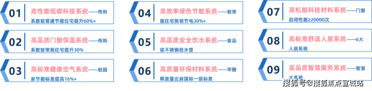 有着高性能低碳科技系统、高品质安全饮水系统、高品质智慧服务系统等“玖”维高能系统。以能耗水平远低于常规建筑物的建造标准,让房子能耗更低、碳排更少、居住体验感更佳。