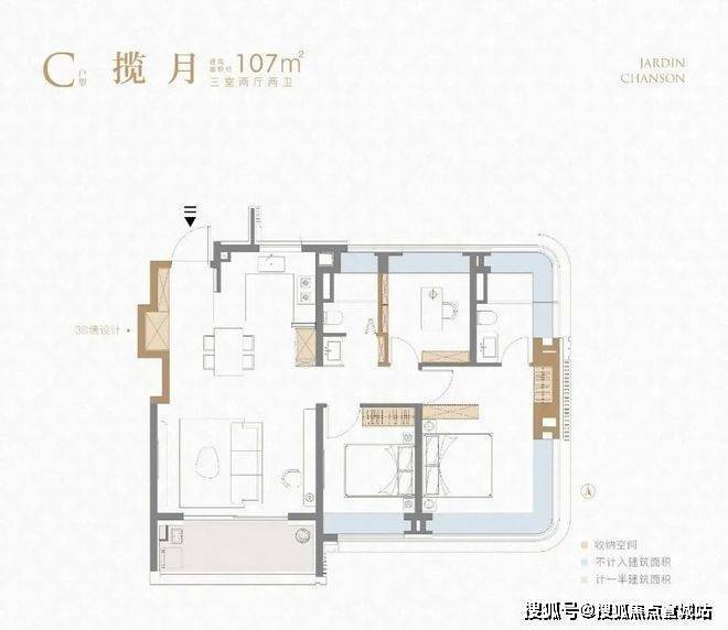 不夸张的讲,这个 建面约107㎡刷新了我对百平三房的新认知,据悉该户型或将申请专利,我认为实至名归!