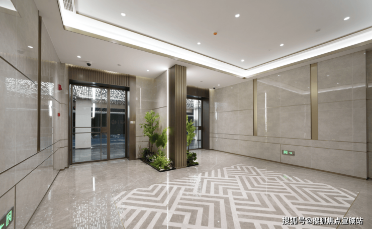 从项目南入口,穿越前厅的潺潺水景,便是与社区建筑完美融合的门厅大堂,其设计简约而不失精致,摒弃繁复细节,彰显出新海派独有的高雅格调。