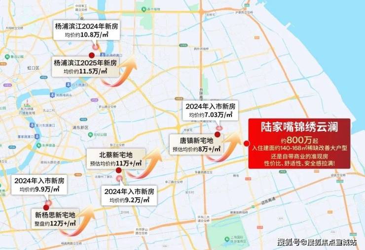同板块内前期新房项目为陆家嘴锦绣观澜,2021年开盘价为64000元/㎡。 目前少有的准现房,今年买今年住!实景呈现,所见即所得,买得安心。