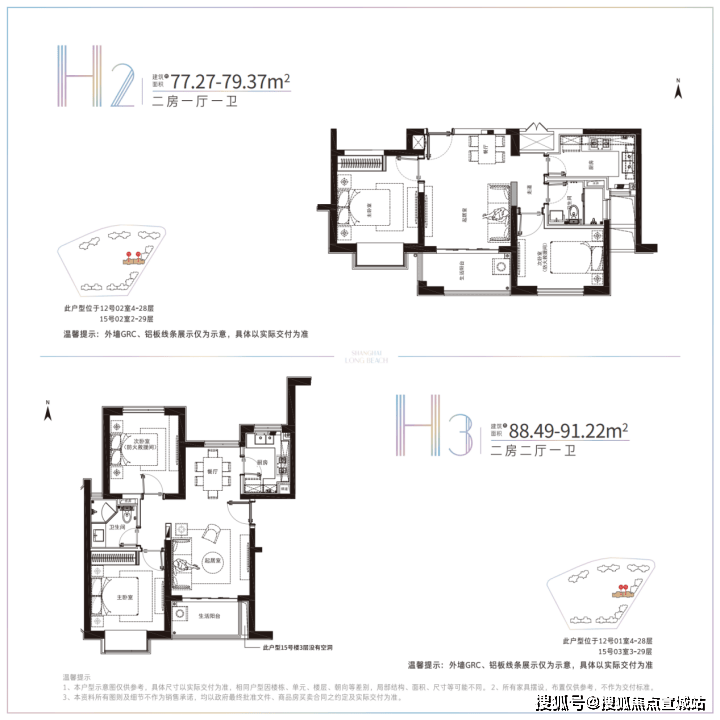 建面约78-91.22平米的小户型,两房两厅一卫的格局,非常适合年轻刚需家庭上车。