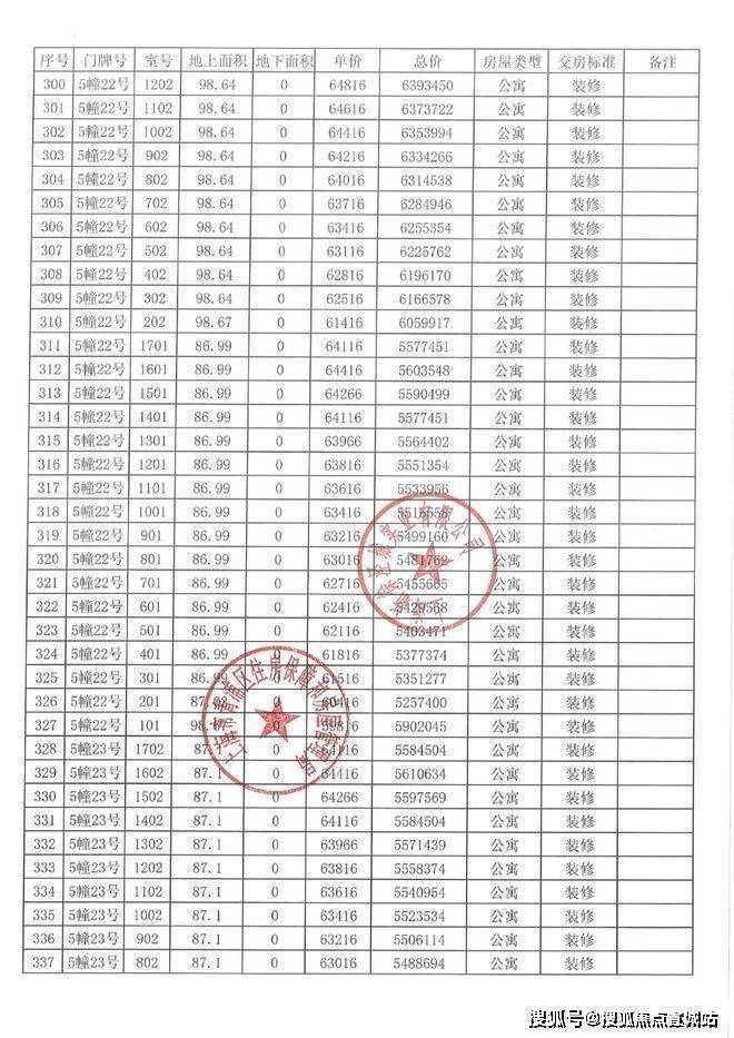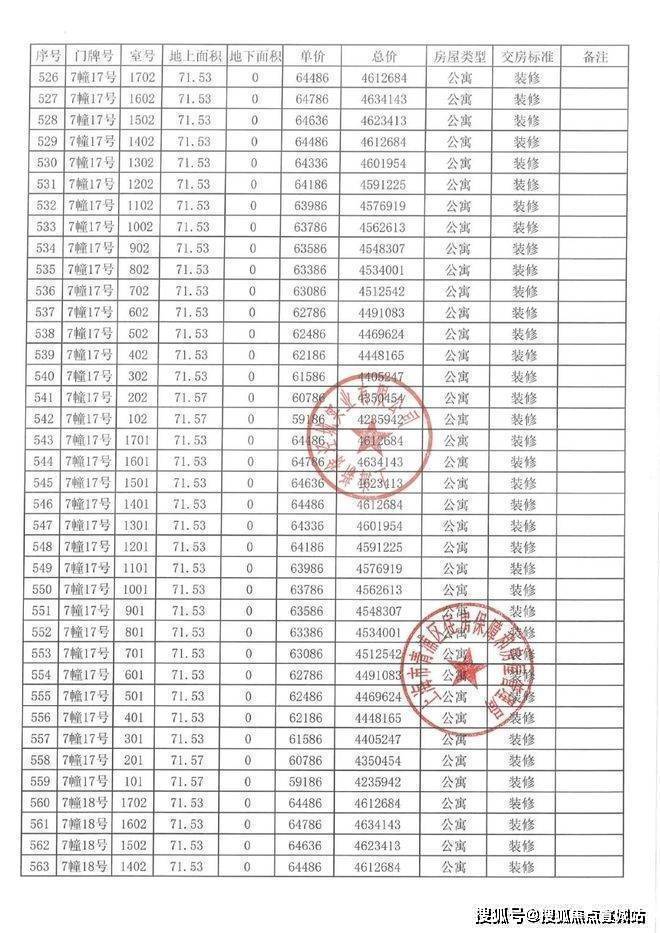 一房一价表