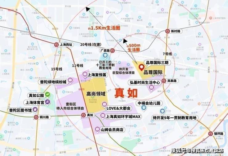 除此之外,品尊国际直线约1.5km的生活圈内,除了之前提到的中海环宇城max以及LOVE&大都会外,还有上海复悦荟、绿地缤纷城、山姆会员店,等待开发商的壹街区等等。