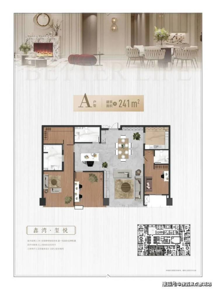鑫湾甲邸定位为“整栋规划高阶顶奢大平层”,主打241-486㎡奢装大平层。