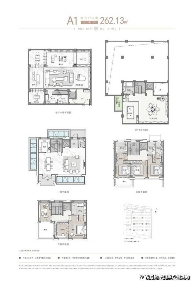 户型面积:在售户型建面约 310-411㎡,为地上三层地下一层结构。其中,一层层高 3.6 米,二层层高 3.4 米,三层层高 3.4 米,地下层高 5.4 米。