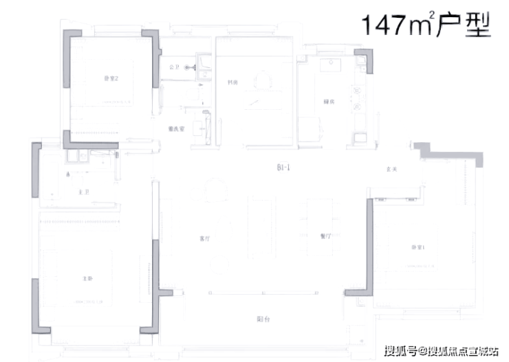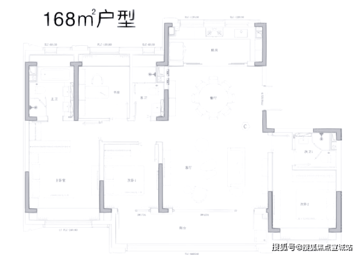主力户型:建面123㎡(三房)、147-168㎡(四房)、216㎡(四房),设计方正,部分户型含双阳台及270°观景视野