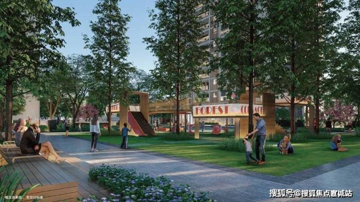 分为纵横十字景观轴网格式排布,汇聚多样化、多年龄段活动场地,营造一个有艺术的、充满生机的活力居所。
