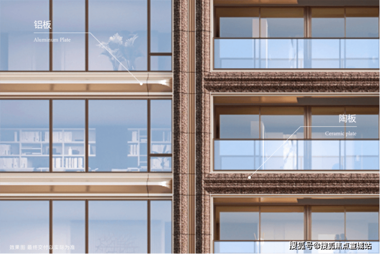 建筑四面均采用铝板+玻璃+定制陶艺,历经百次试烧锻造鎏金陶板,成就上海唯一国际东方艺术全景立面,每面皆城市封面,整体采用非对称的结构设计,回应上海东西方文化交融碰撞的城市美学。大胆采用四排楼布局,以保证户户通风采光,类一梯一户无连廊设计,将入户私密性做到极致。