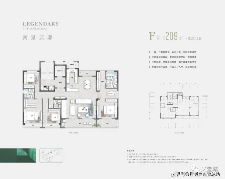 如果说189㎡级的四房,是达到了墅式标准的话,那这款建面约209㎡的整层大平层户型,就是改善的终极款了。