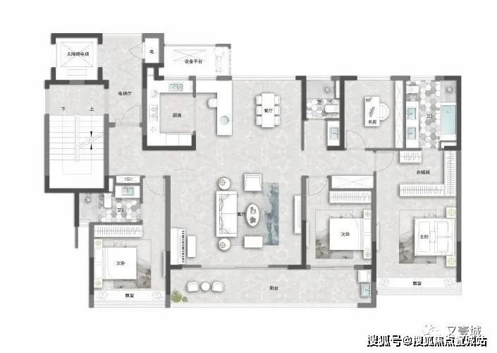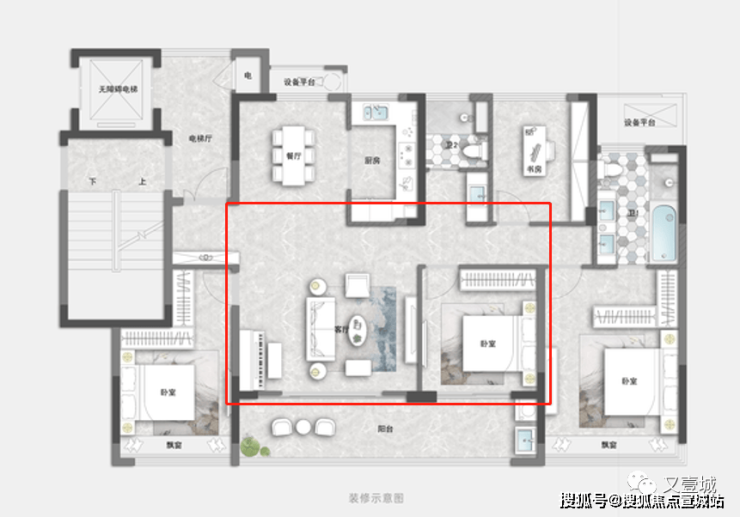 看到这户型的第一时间,想到的就两个字:宽奢。