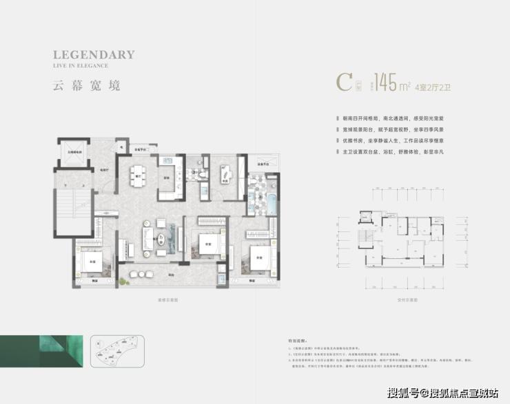 建面约145㎡户型的全面升级版,拉大了整体户型的面宽,尤其是餐客厅区域,不需要打开墙都能轻易实现朝南4+1的开间格局。