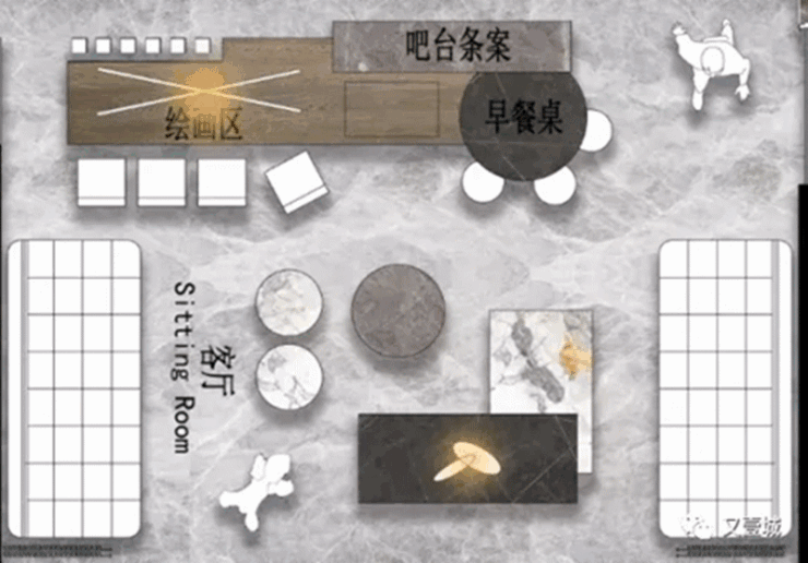 关于大横厅客厅的生活场景,大家可以学一下我以前的设计: