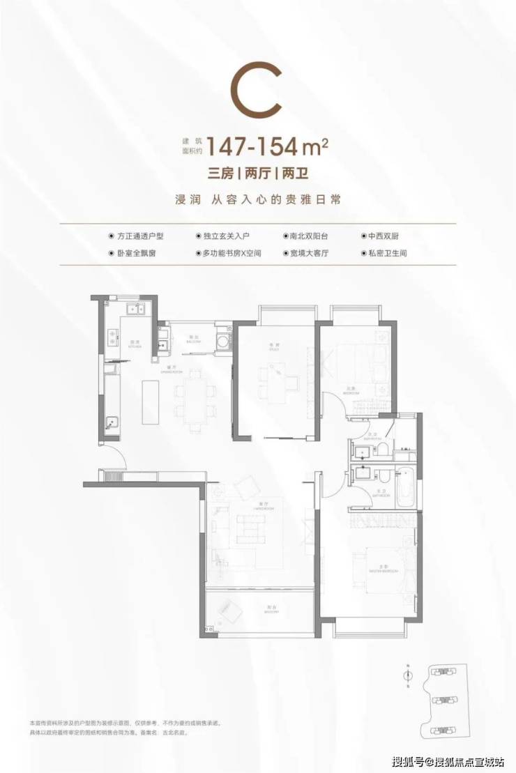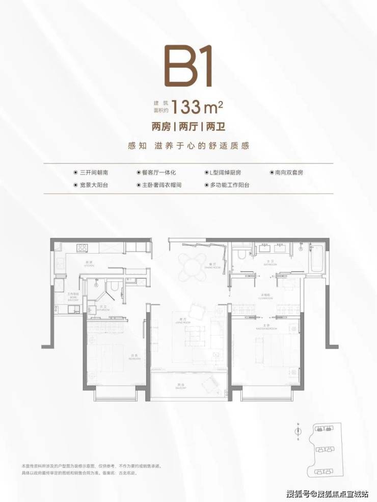 主力户型:2房133㎡、2+1房135㎡、3房150-154㎡