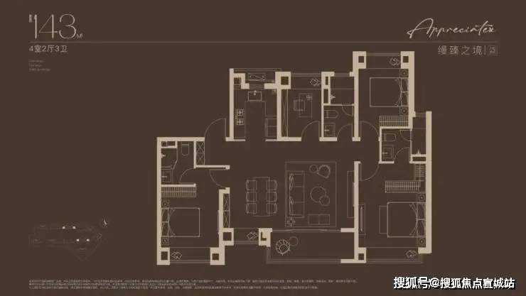 建面约143㎡四房设计,不论是三代同堂还是二娃家庭,都舒居无忧!2梯2户的设计,极具私密性的入户门厅,彰显大宅归家礼序。独立玄关,既是归家仪式感,更添收纳空间;约14米朝南面宽,搭配约7米尺度横厅,尽显大宅风范;东西双套房设计,奢享全龄世家的静谧时光。