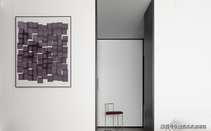 私密场域依旧保持静谧,黑白色基础上搭配了更多的色彩,例如深棕、浅紫等,艺术品的衬托深邃迷人,热络了家的氛围.
