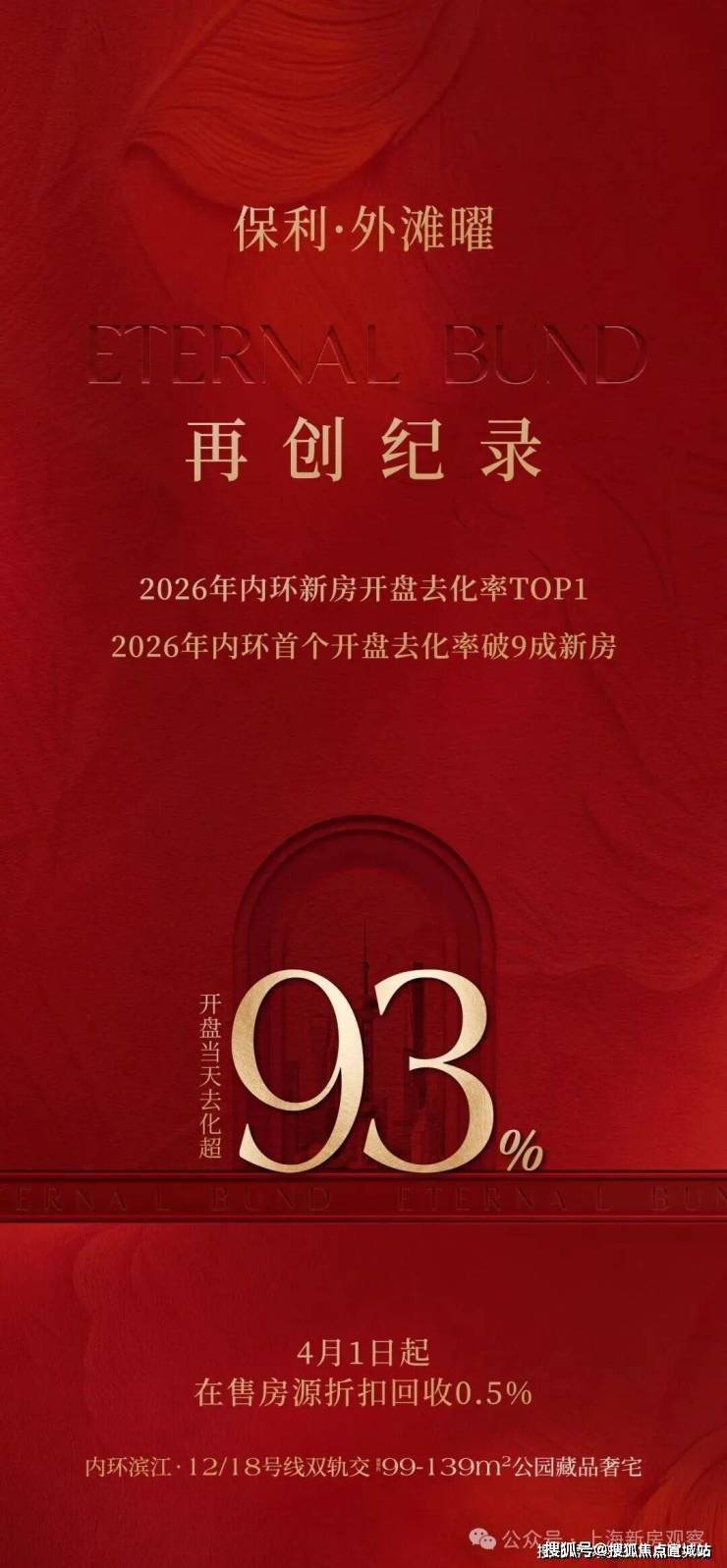 3月27日正式开盘,二批次去化超93%,成为内环首个开盘去化率破9成的新房,再创纪录,问鼎2026年内环新房开盘去化率TOP1,成为内环滨江红盘领跑者。据最新消息,项目4月1日以后在售房源优惠回收0.5%