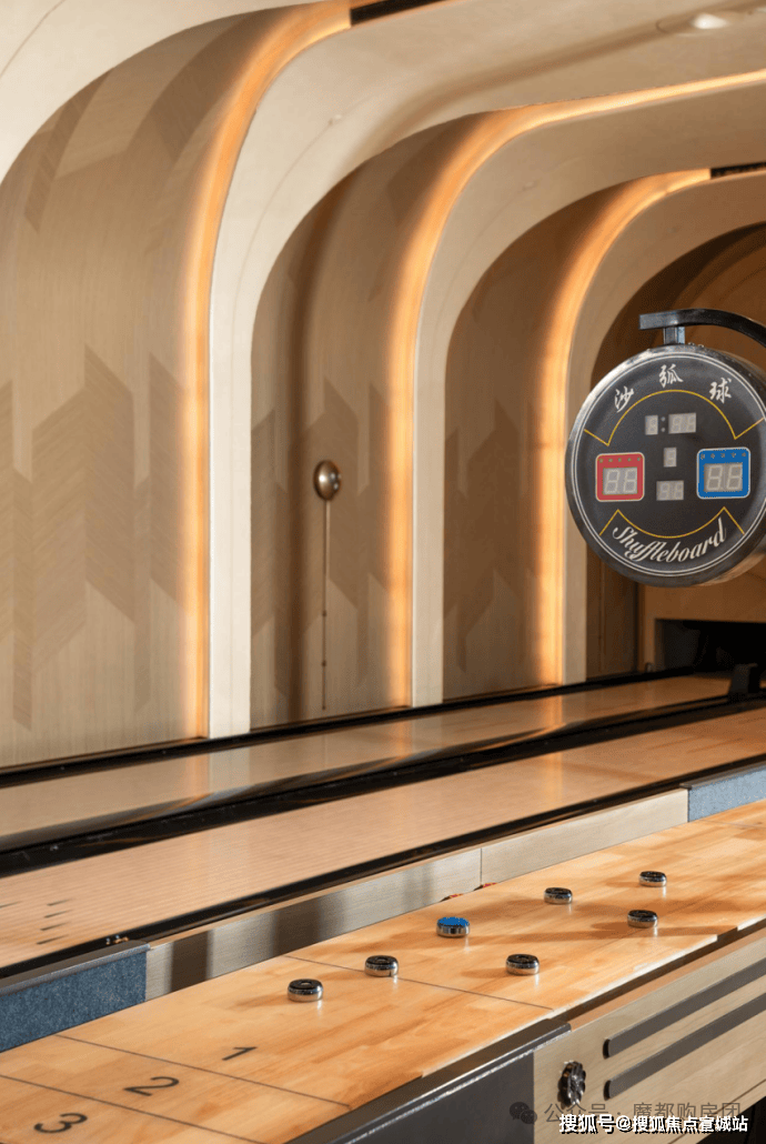 保龄球&沙壶馆: 这是在市场很多顶豪都不一定有的首创功能。沙壶是 起源于15世纪的英国贵族桌面游戏 ,如今已是高端派对及圈层聚会的社交催化剂;