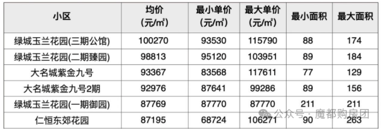 6.二手市场价格可期 , 旁边绿城二期今年成交一套90m²小户型,单价9.1万,比保利天奕前期小户型最贵单价还贵出近1万/m²!