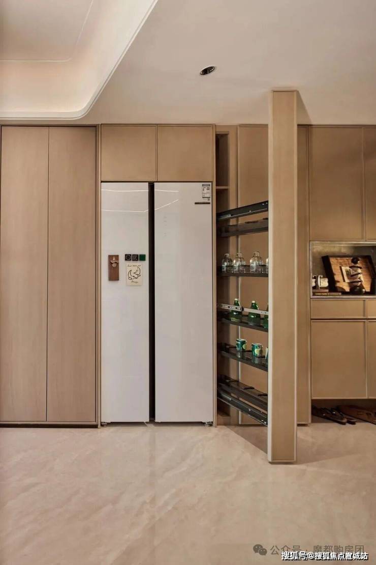 4.创新S墙分户设计, 让收纳系统从平面延展为立体暗线,通过玄关柜、冰箱柜、零食拉篮的巧思,用立体空间创造更海量收纳!