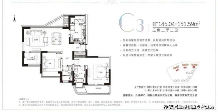 建面约78-91.22平米的小户型,两房两厅一卫的格局,非常适合年轻刚需家庭上车。