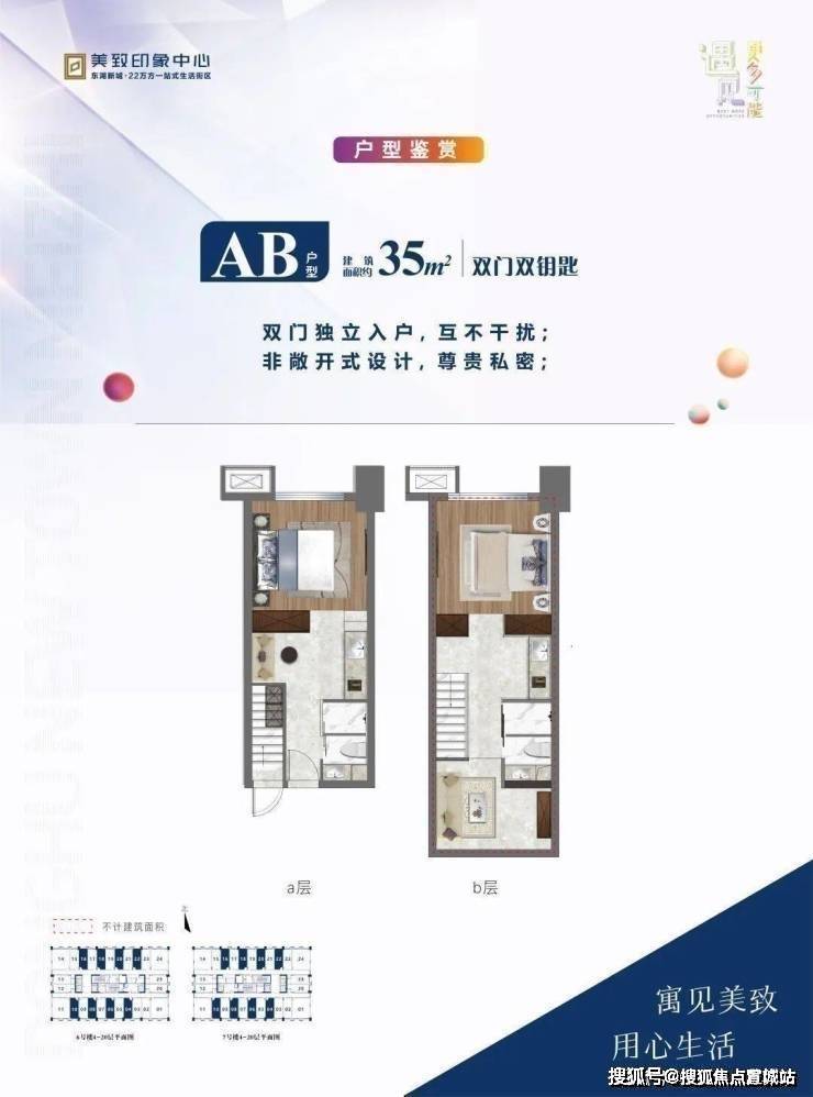 AB双钥匙户型建面约35㎡,创新设计了双开门独立入户,互不干扰,极具隐私性。