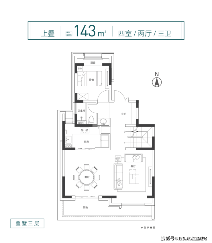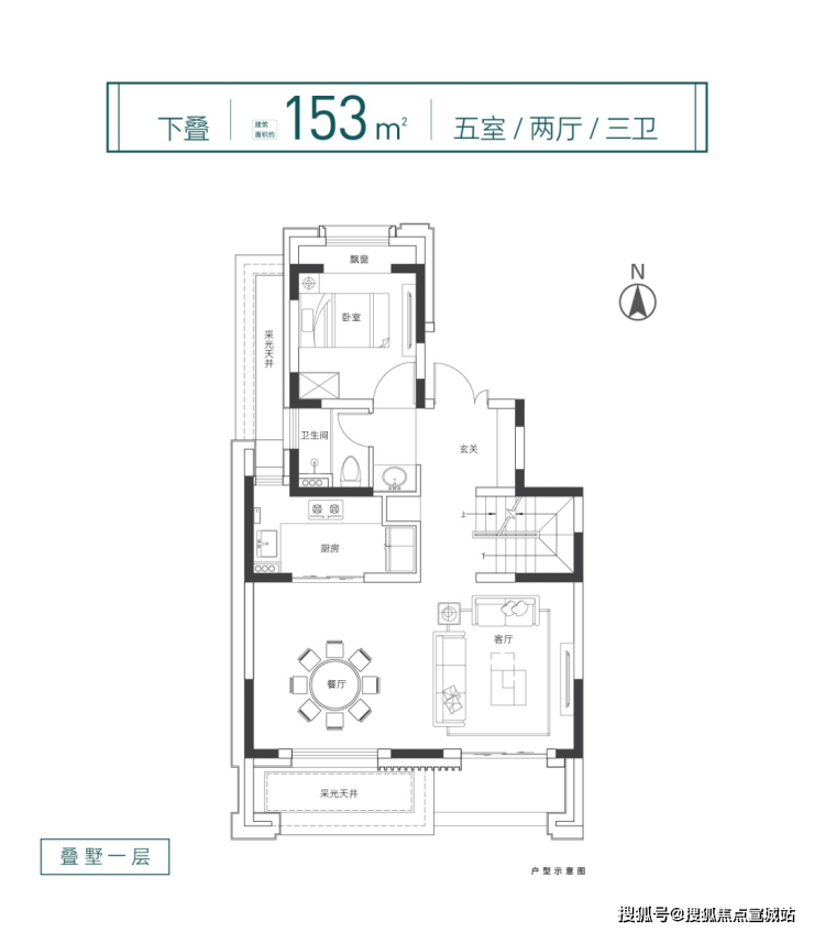 建面约143㎡4室2厅3卫上叠、约153㎡5室2厅3卫下叠,格局方正阔气,约7.3米大面宽双厅,尺度非凡,配合大面宽阳台设计,光线俱佳。