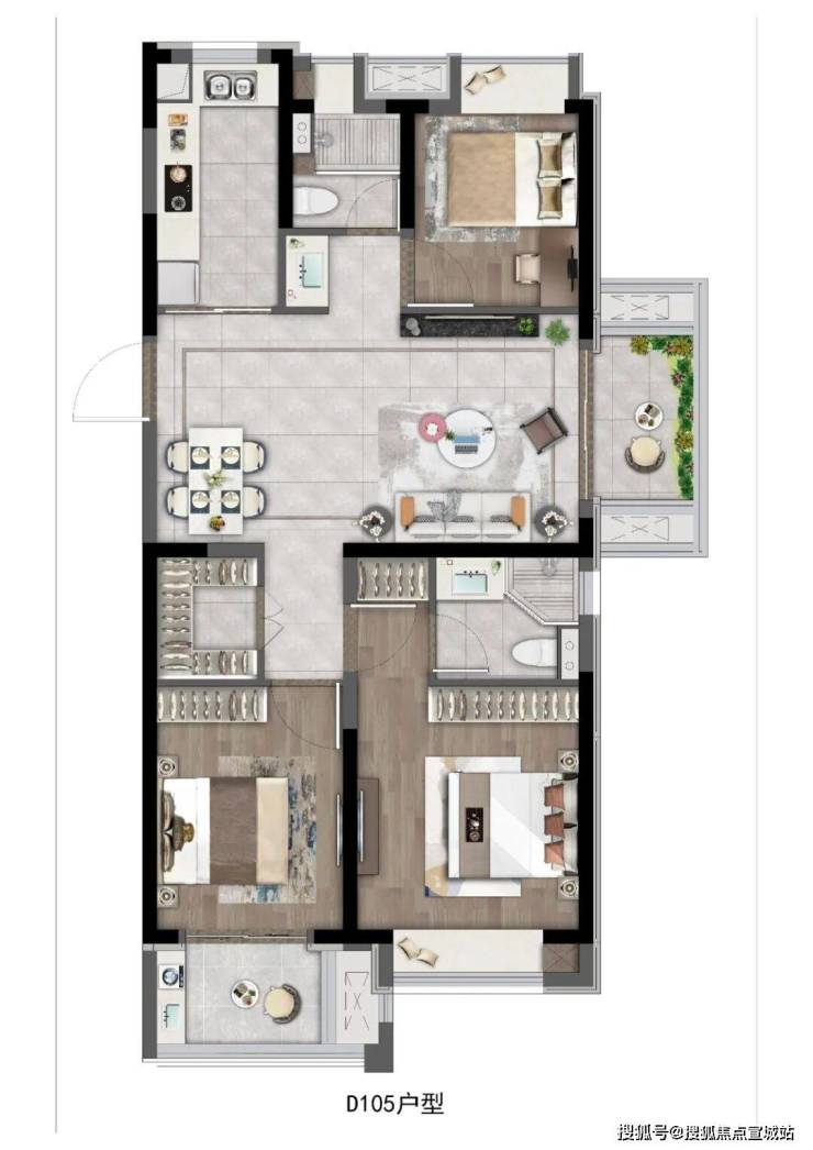 约96~105㎡高层,朗阔三房设计,多功能空间适配三口之家、三代同堂,亦或者是二孩家庭。
