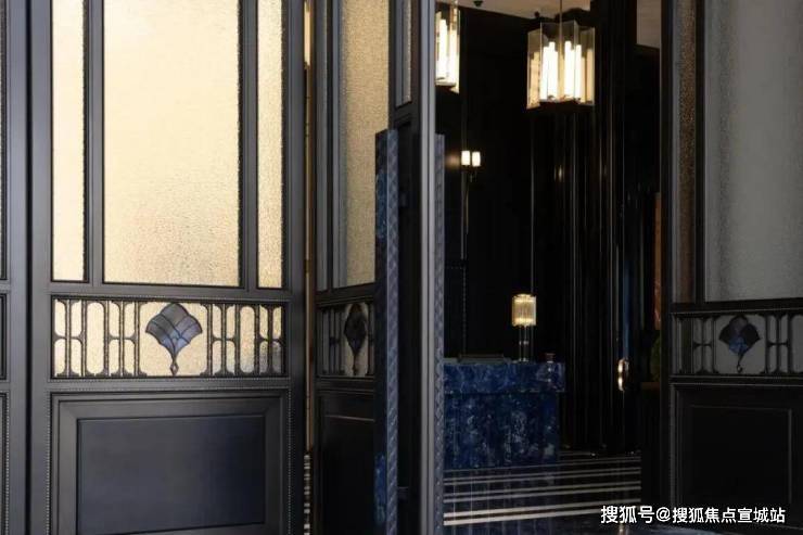 约30米的艺术连廊,借鉴PRADA荣宅多立克柱式以及和平饭店的拱形廊道,摩登海派,魅力十足: