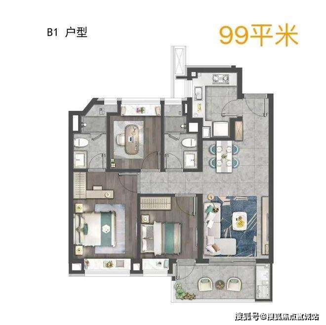 以99㎡三房两厅两卫户型为例,客餐厅连接景观阳台,采光面更大,为日常生活带来更多舒适感,双卫设计更为生活增添便利。105㎡三房两厅两卫户型,客餐厅与阳台一脉相连,居住空间感进一步扩大,约5.1米的宽厅,无论是日常休憩还是会客,都尽显大方得体。此外,项目中央空调、地暖、新风三大件配套齐全,且臻选大金等同级品牌空调地暖、老板和方太等同级品牌厨房配备、摩恩、弗兰卡、科勒等同级品牌卫浴配备,每一处细节都彰显着对居者的用心,为您打造高品质的居住环境。