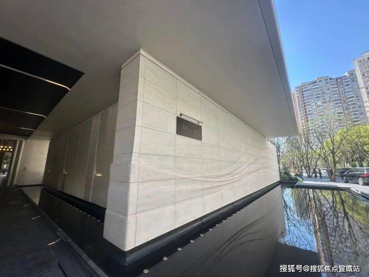 稍微走近一点就能看到采用了大量的弧形元素和石材材料。石材的质感本身就厚重,在上面叠加类似海浪的线条弱化了厚重感,反而显得轻盈。