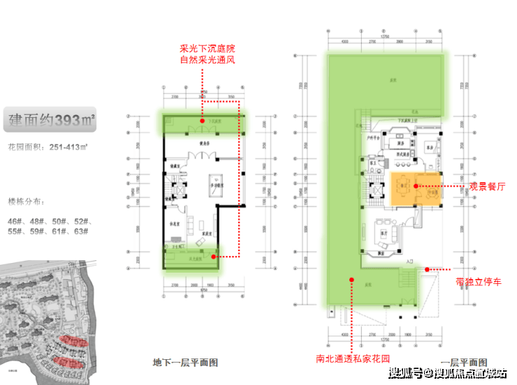 建面约393㎡双拼别墅,花园面积251-413㎡